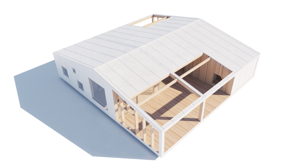 A proposta baseia-se em casas modulares intimamente conectadas à natureza. Os interiores são, portanto, tão naturais quanto o exterior. De facto, os arquitectos explicam que “quando se tem luz, espaço e uma forte relação entre interior e exterior, a quantidade de metros quadrados não é essencial para definir se a casa é percebida como grande ou pequena”.